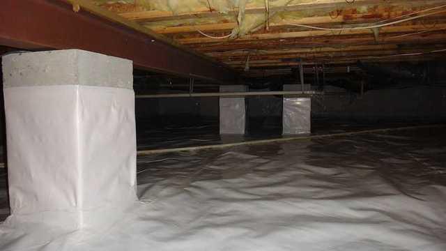 Keeping a continuous liner is very important. There can be no leaks or gaps to let in musty air. This means that each of the foundation piers must be wrapped and sealed. On top of making the system complete, it also looks great.