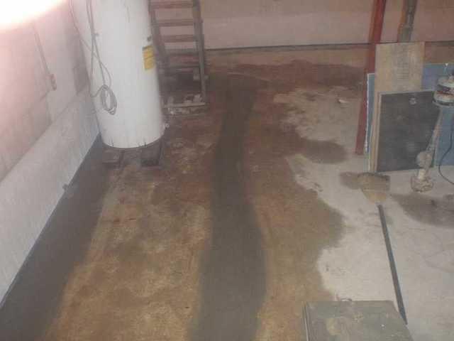 This basement had a rather large crack in the floor and it leaked water after every rain storm. The best way to be sure the water gets to the sump pump is to open up the crack a little and install another pipe. Any water that comes up in this spot will be sent off to the pump.