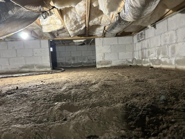 Falling insulation and water intrusion can be a bad mix full of microbial growth. After cleaning the fallen insulation out of the crawl space, DryZone controlled the moisture and placed a strong sump pump to remove ground water as soon as it comes in.